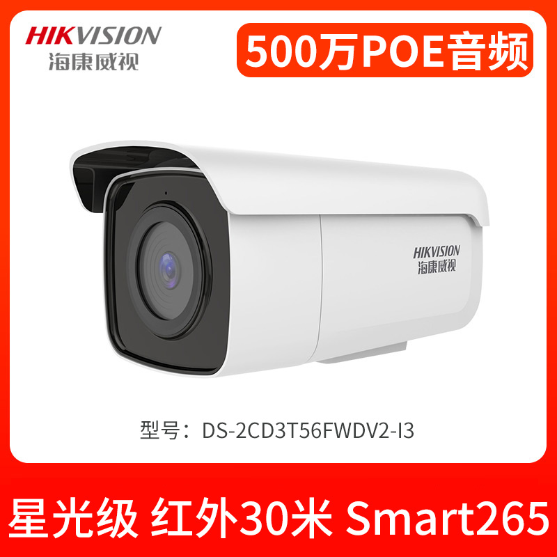 • 海康威視(HIKVISION)500萬星光級可錄音 監(jiān)控器室外紅外槍機DS-2CD3T56FWDV2-I3