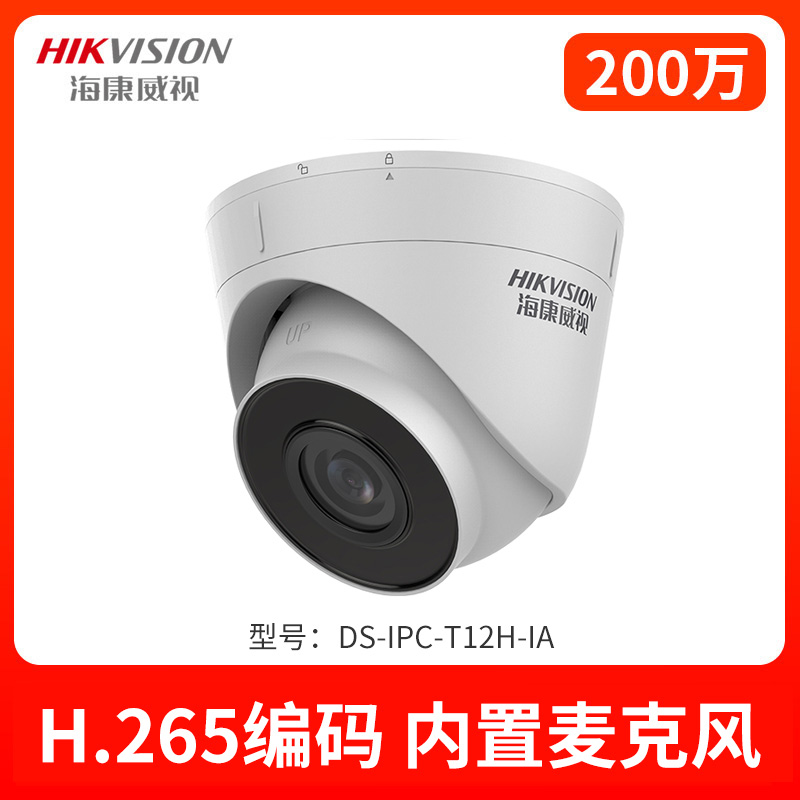 • 海康威視(HIKVISION)攝像頭200萬帶音頻監(jiān)控套裝攝像機DS-IPC-T12H-IA/POE網絡監(jiān)控紅外半球